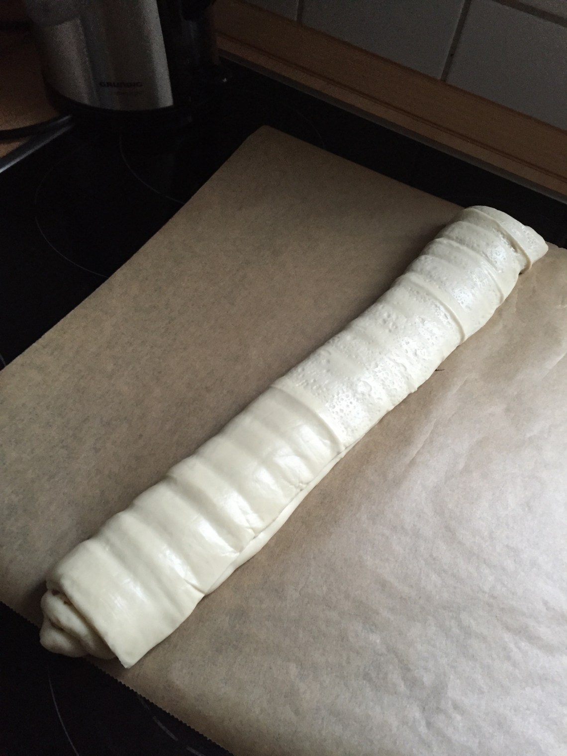3. Einrollen. Ich habe die lange Seite eingerollt damit ich nicht so einen fetten Klops habe.