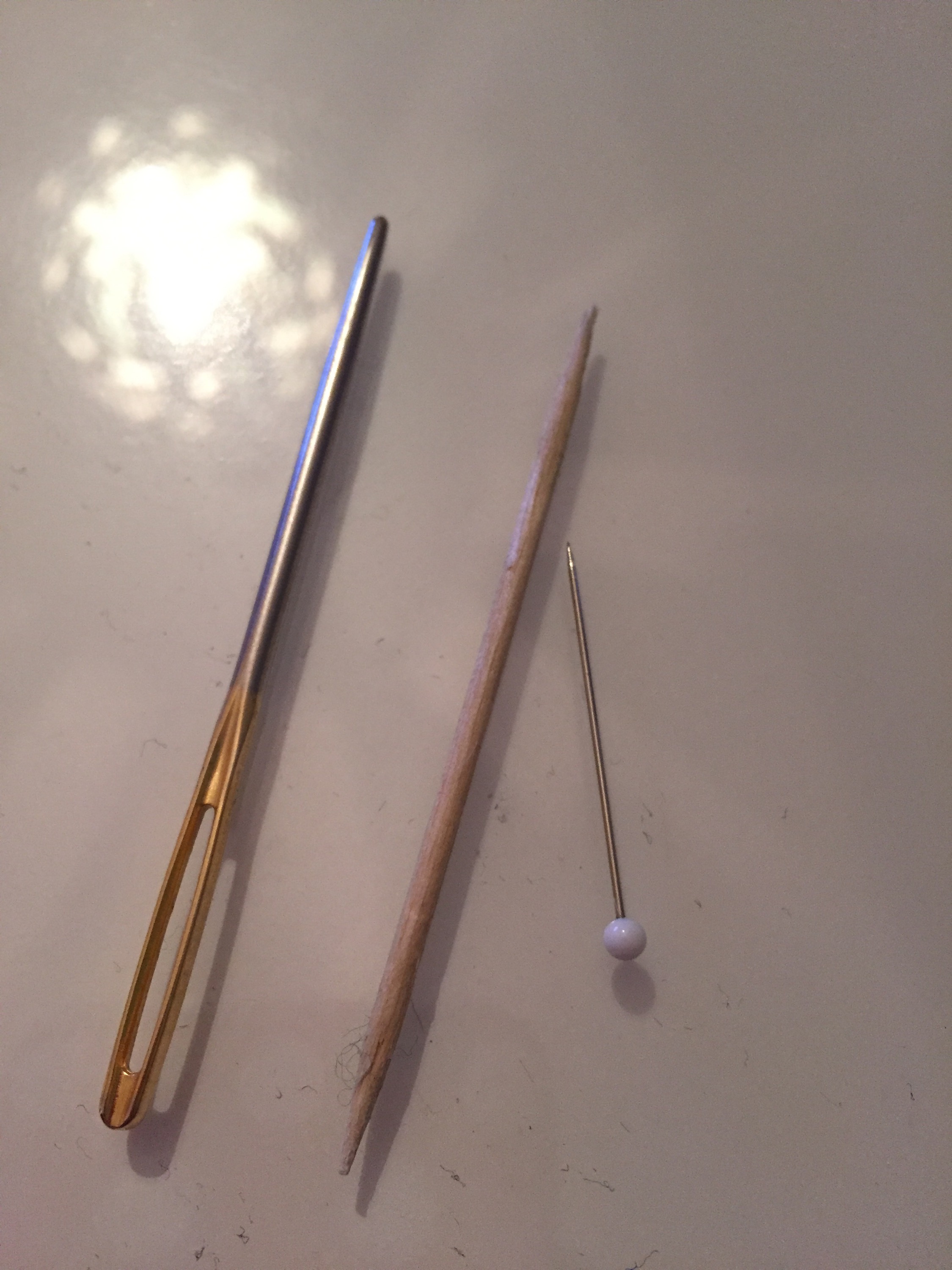Weil ich weiterhin kein Geld für Modellierwerkzeug ausgeben wollte, habe ich mir als Hilfe, Nadeln, Zahnstocher und Messer bereitgelegt.