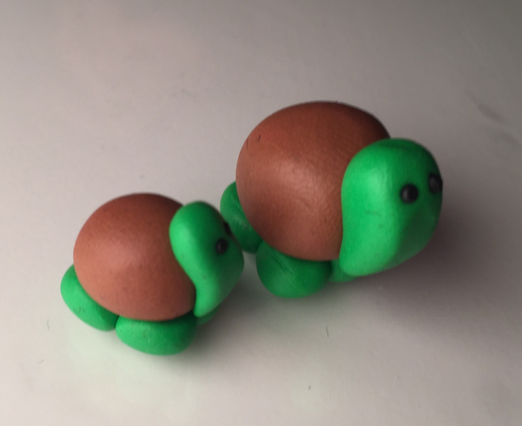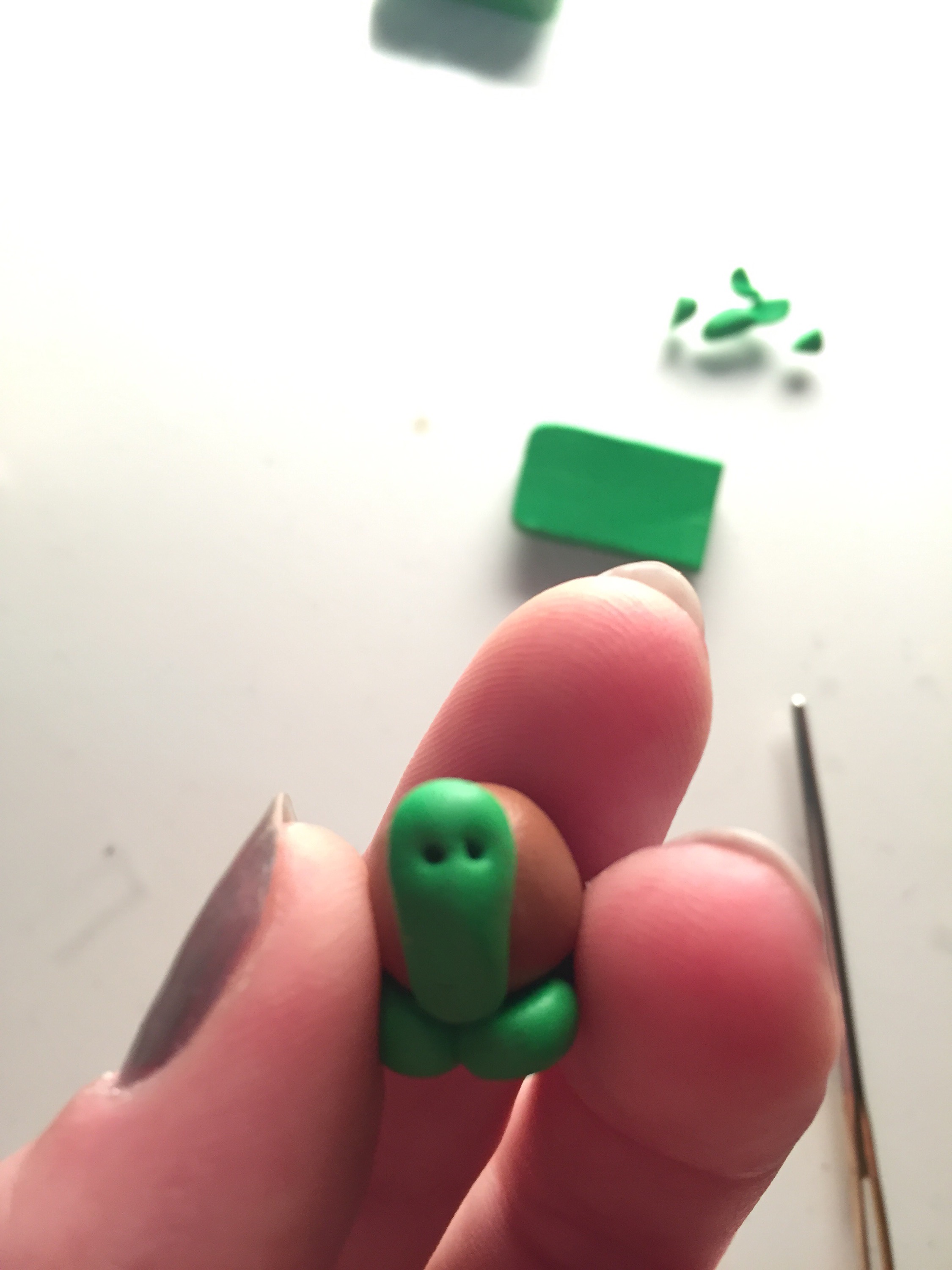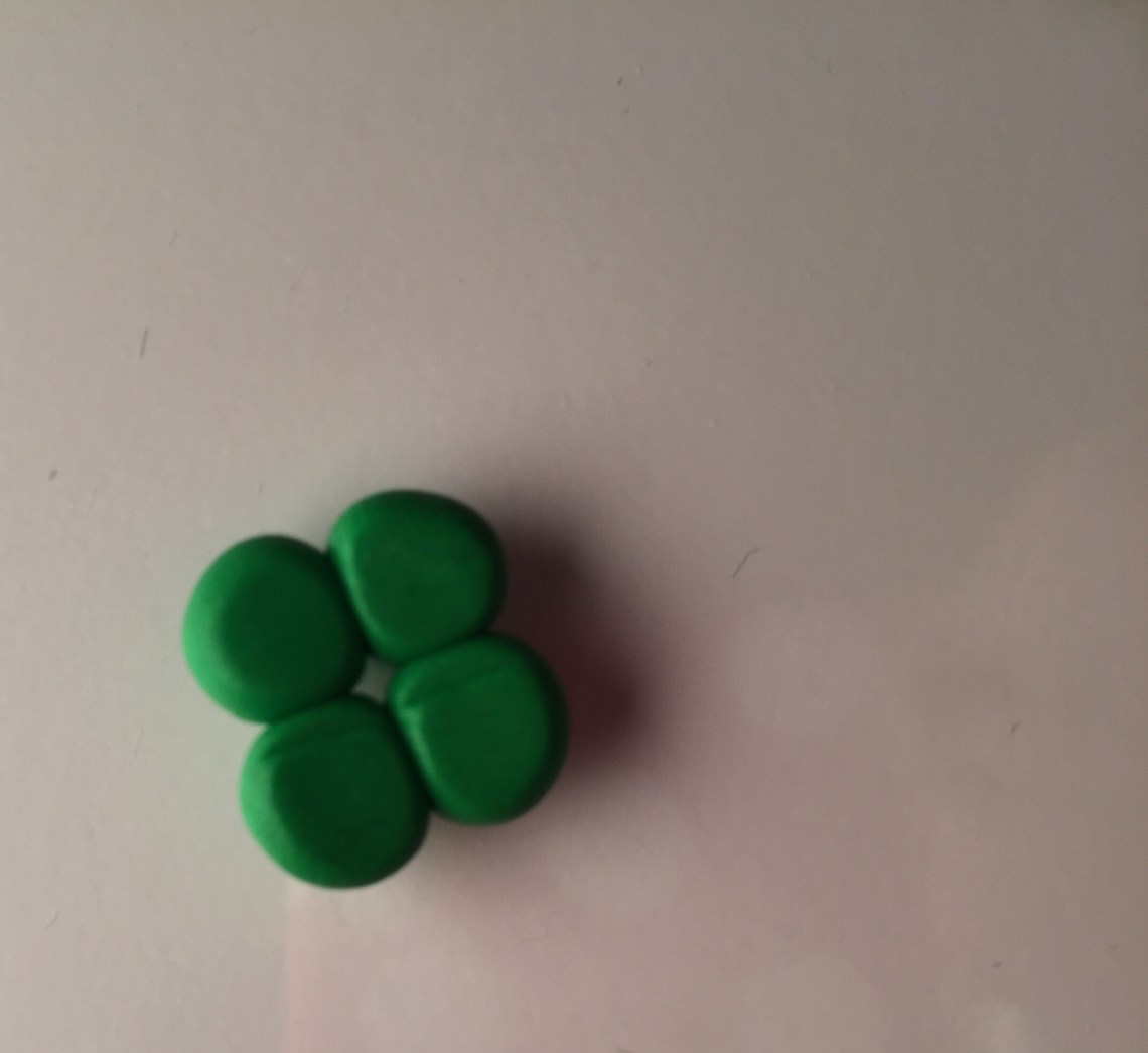 2. Mit dem grünen Fimu formt ihr 4 kleinere Kugeln für die Beine.