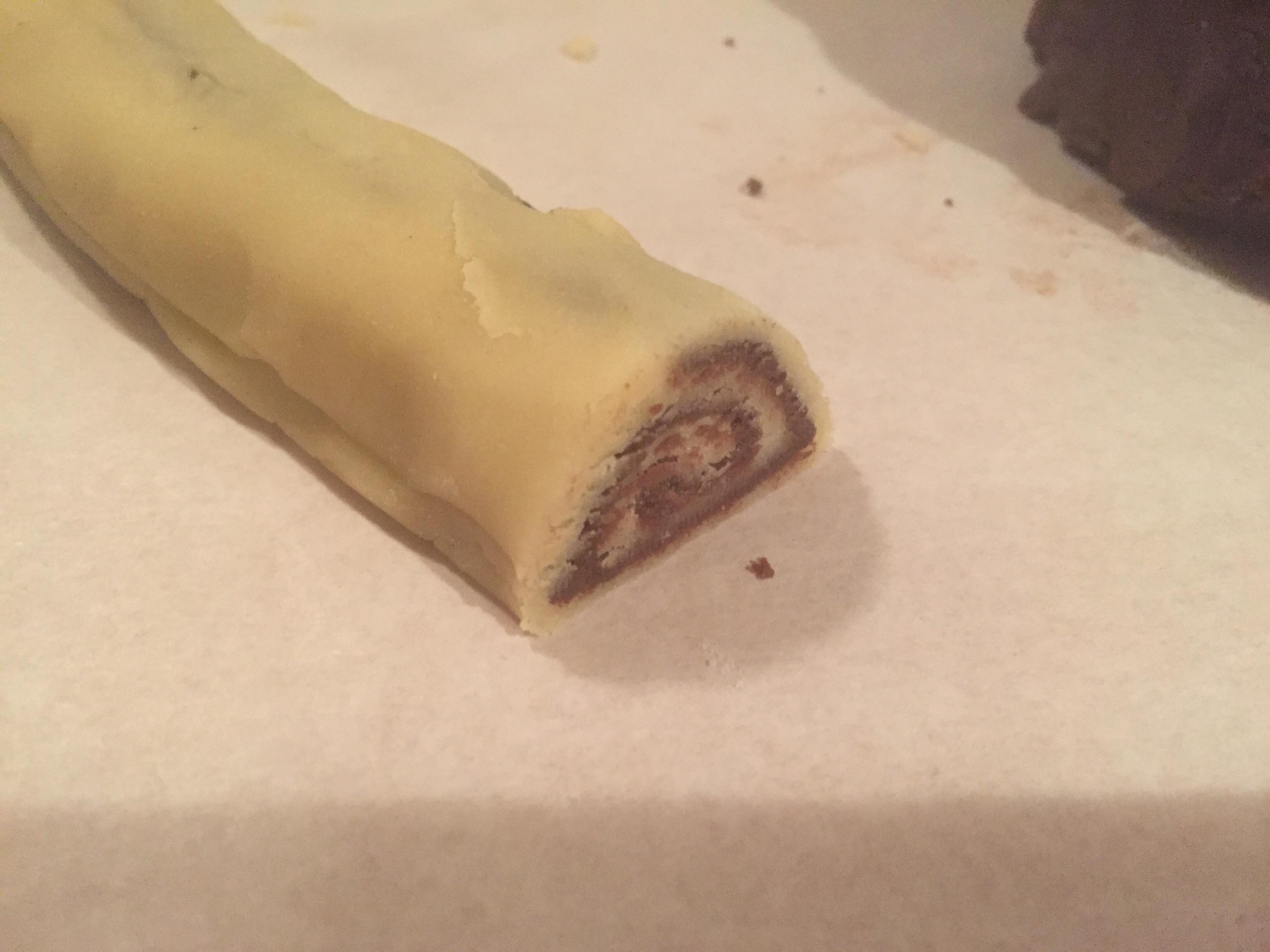 Mein Teig ist leider etwas gebrochen aber ich hab tapfer weitergerollt. Ihr dürft den Teig aber nicht andrücken sonst geht das Muster kaputt.