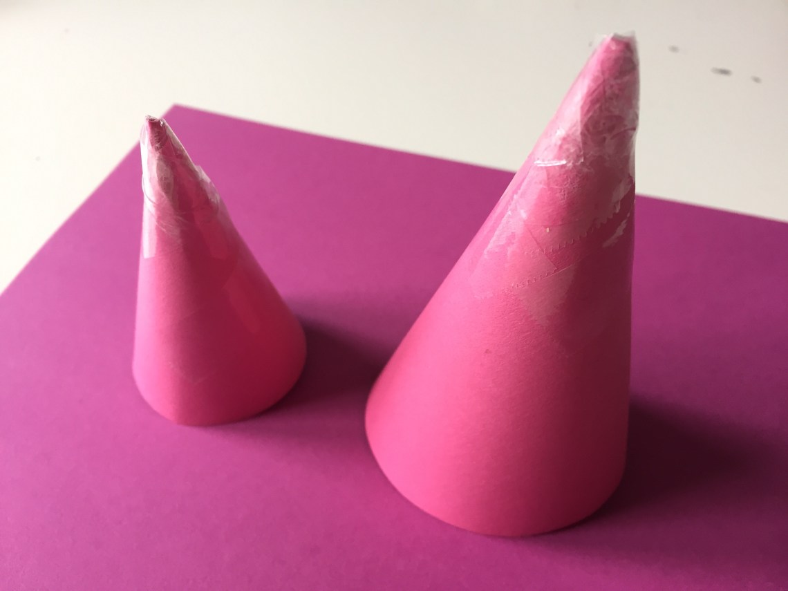- Jetzt müsst ihr das Tonpapier zu einem Trichter zusammenfalten und mit Tesafilm abdichten.