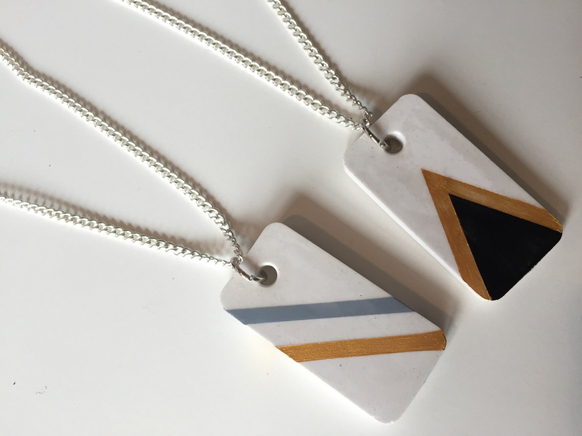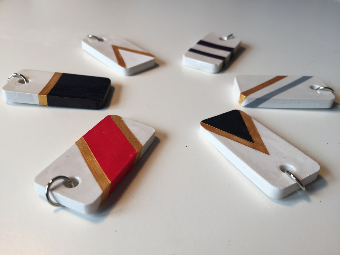 - Jetzt müsst ihr sie nur noch anmalen. Ich habe mich für klassische Farben wie schwarz, weiß und blau entschieden und mit Gold umrandet. Der rote Anhänger war mein Testobjekt. Für gerade Linien habe ich einfach Tesafilm hergenommen und das hat super funktioniert.