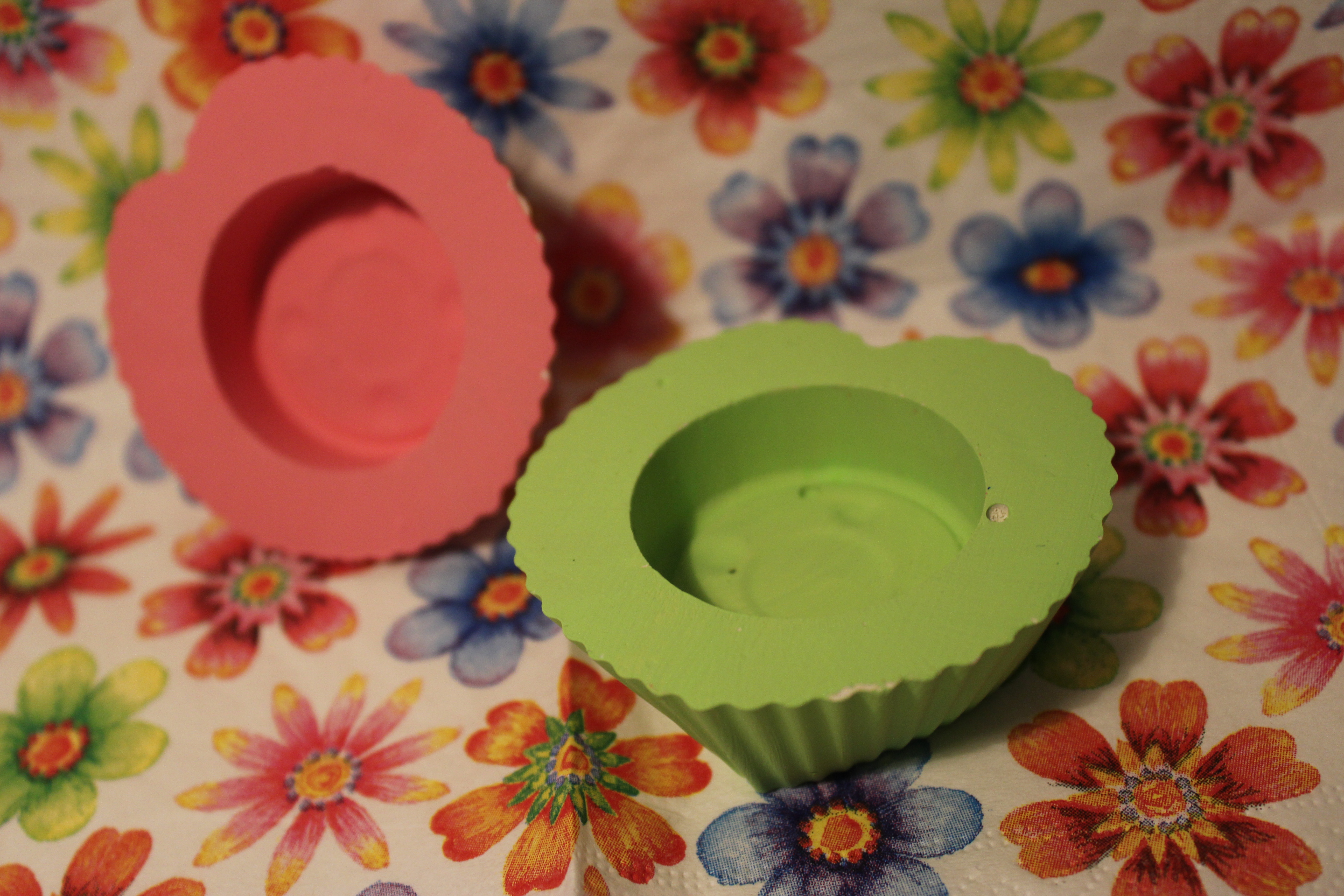 3. Die Teelichter in der Mitte positionieren und trocknen lassen. Meine Muffinformen sind kleine Herzen, das lässt sich leider nur von unten erkennen, jedoch könnt ihr auch ganz normale Runde Förmchen benutzen.
