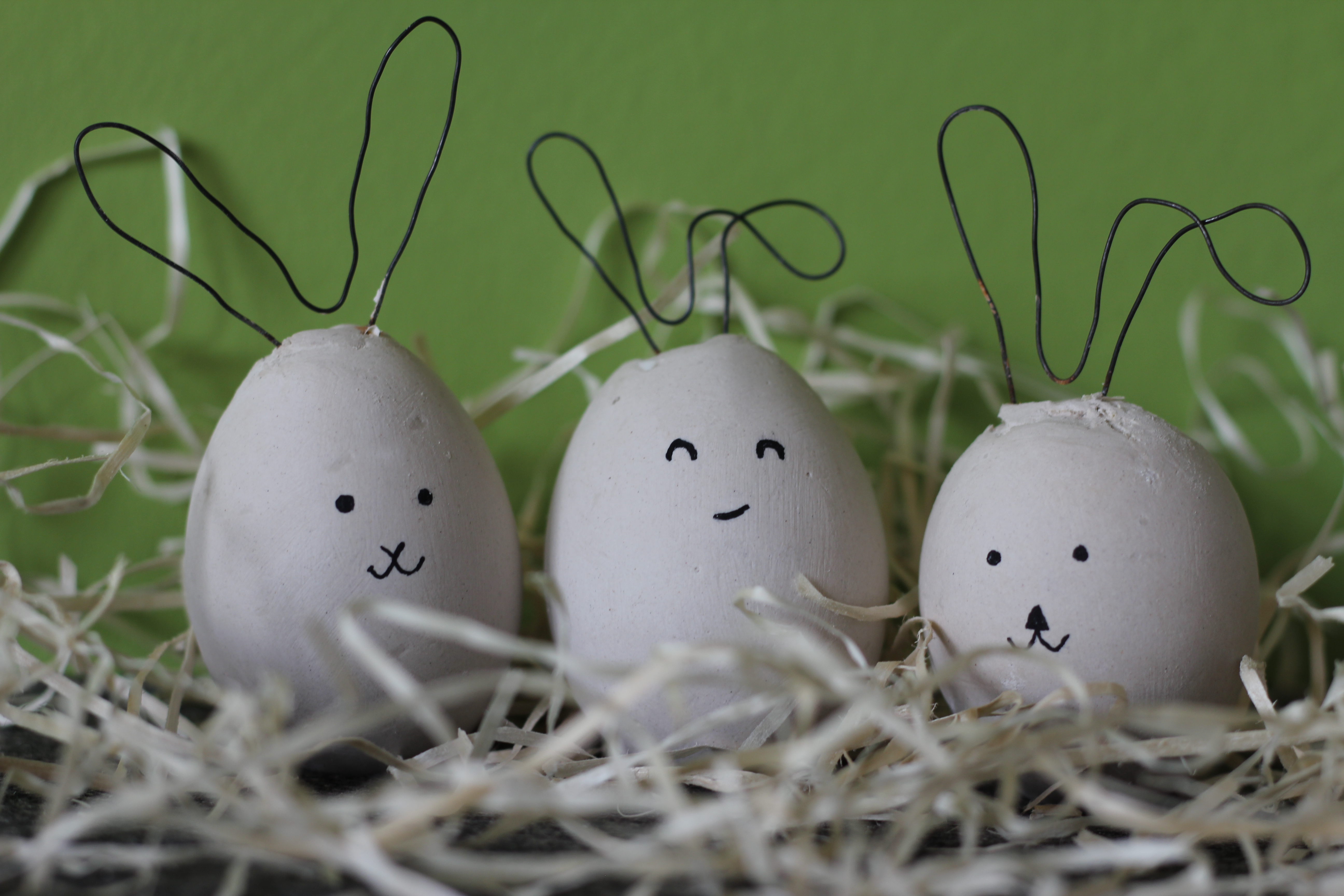 - Zum Schluss schleift ihr die Eier ab um eben kleine Dellen und rund im die Eier eine glatte Oberfläche zu haben. Ein süßes Gesicht könnt ihr mit einem wasserfesten Textmarker aufmalen.