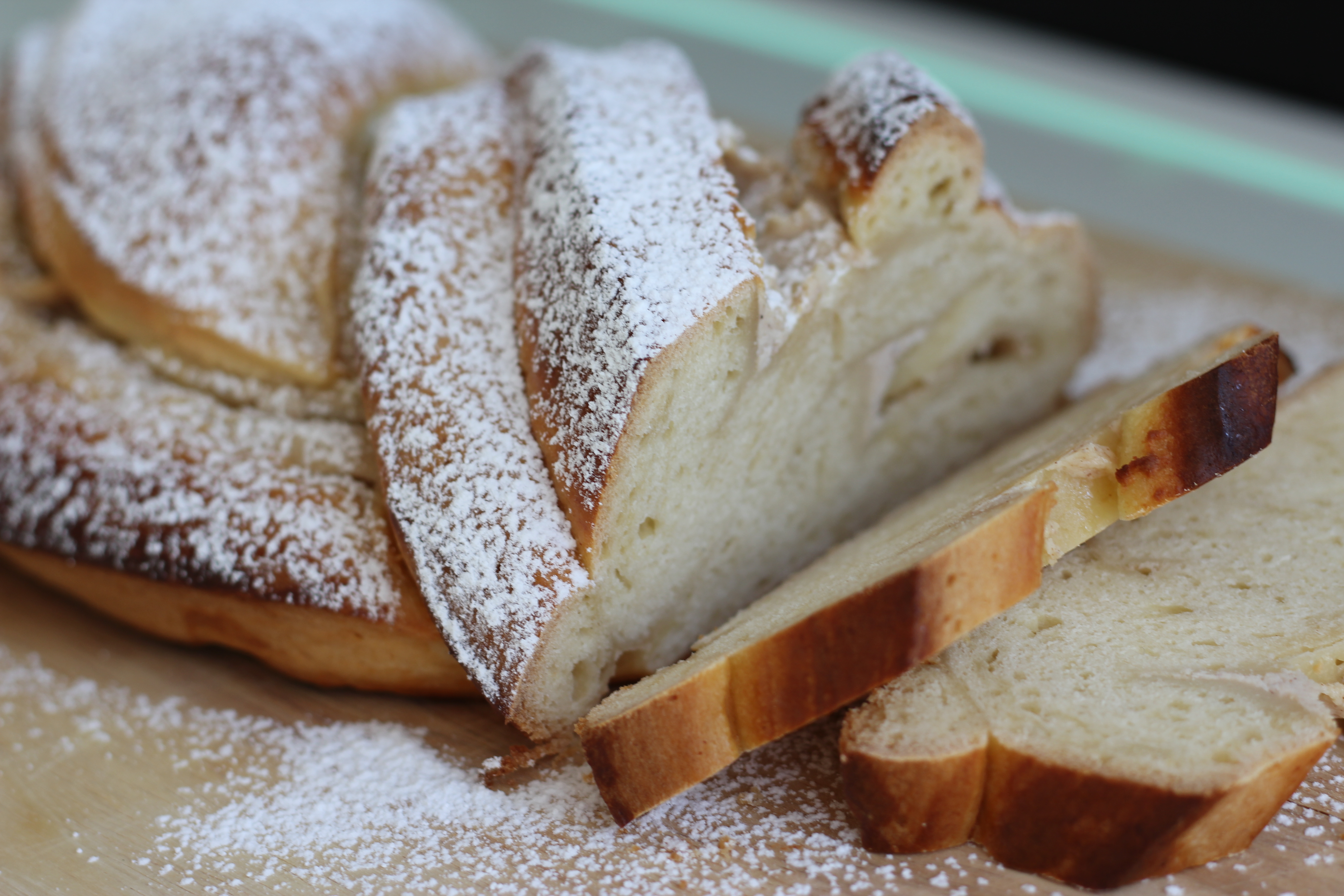 10. Nun schiebt ihr euren Zopf für 30 Minuten in den Ofen und bestreut ihn anschließend mit Puderzucker.