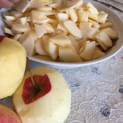 Als nächstes die Äpfel schälen und klein schnipseln.