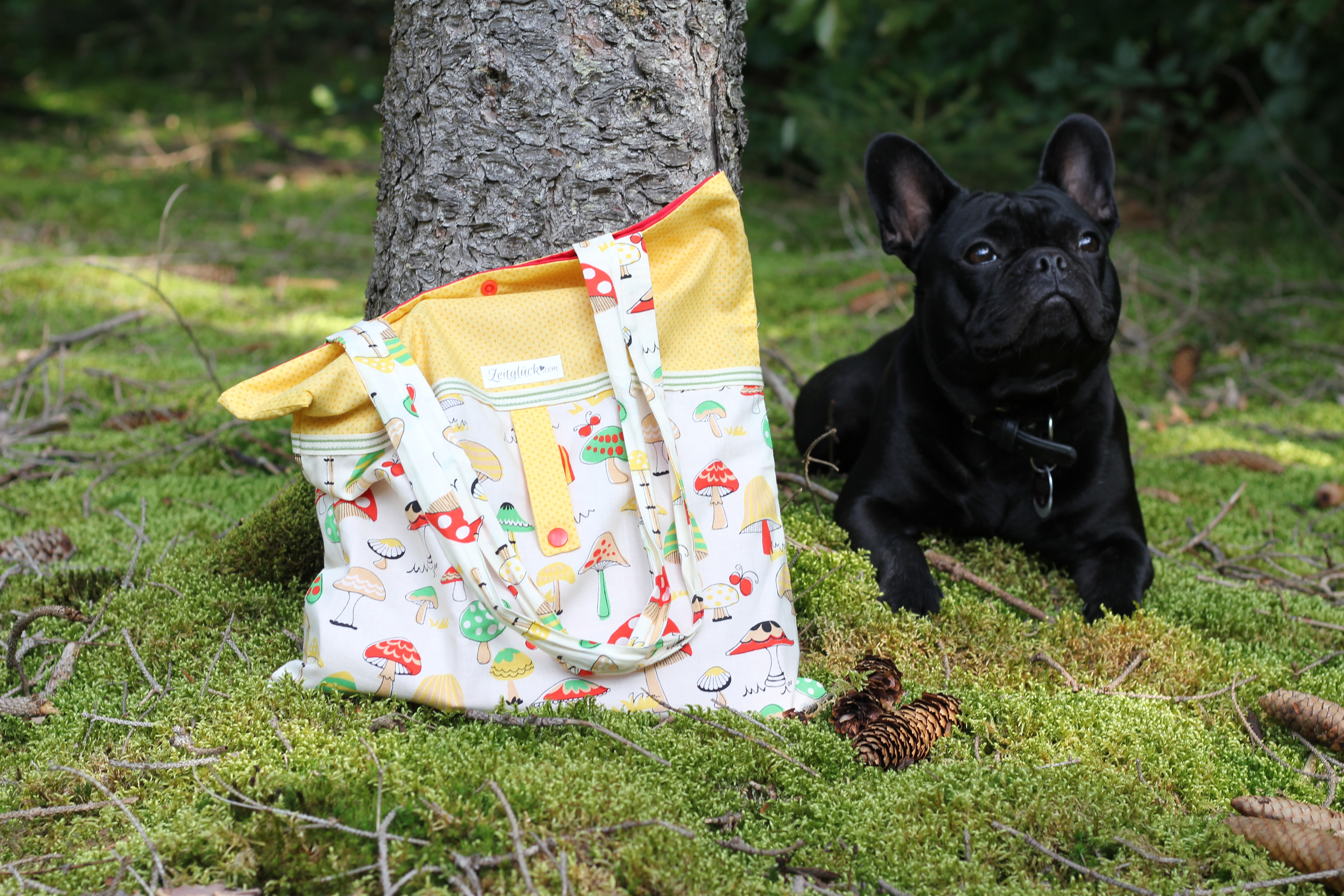 Wie oft habt ihr euch beim einkaufen schon gedacht das ihr eine kleine Tasche mitnehmen hättet können? Also ich mir bestimmt schon tausend Mal! Und jedes mal muss ich wieder eine kaufen oder alles in die Handtasche stopfen. Aber die Zeiten sind ein für alle mal zu Ende! Die Stofftasche kann man ganz easy auf Taschentuchgröße zusammenfalten und in der Handtasche verstauen ohne das sie viel Platz weg nimmt. Oder wie wäre es im Handschuhfach vom Auto, der Jackentasche oder der Schublade in der Garderobe? Die Tasche mit dem Pilzmuster habe ich für meinen Opa zum Geburtstag genäht, die er einfach einpacken kann wenn er Pilze sammeln geht. Süße Idee oder?