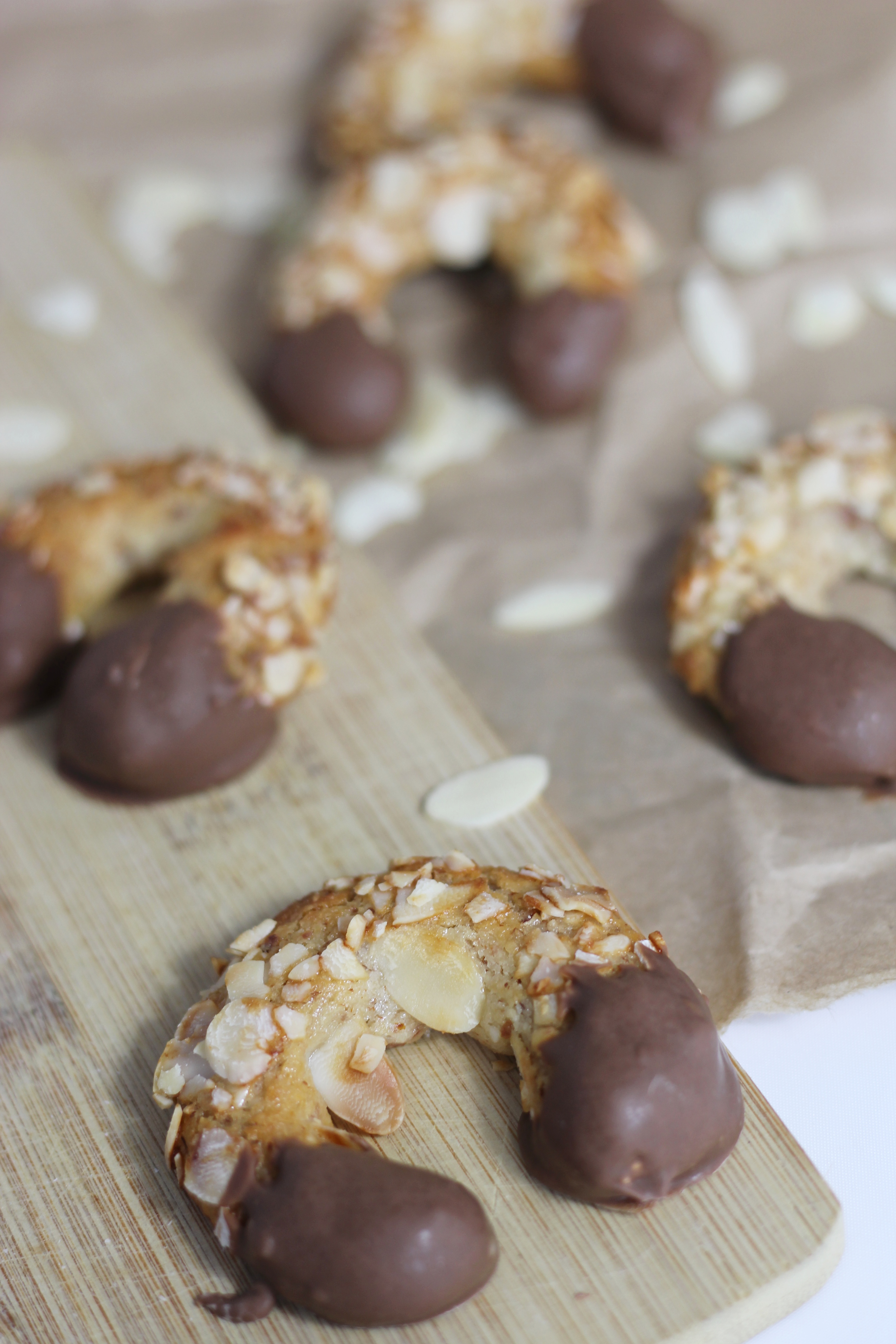 Normalerweise sind Mandelhörnchen etwas dicker und brummiger als die, die ihr bei mir auf den Fotos seht, allerdings wollte ich es beim ersten Mal nicht übertreiben und habe die Variante in mini gewählt und es nicht bereut. Sie sind außen knusprig und innen richtig schön weich.