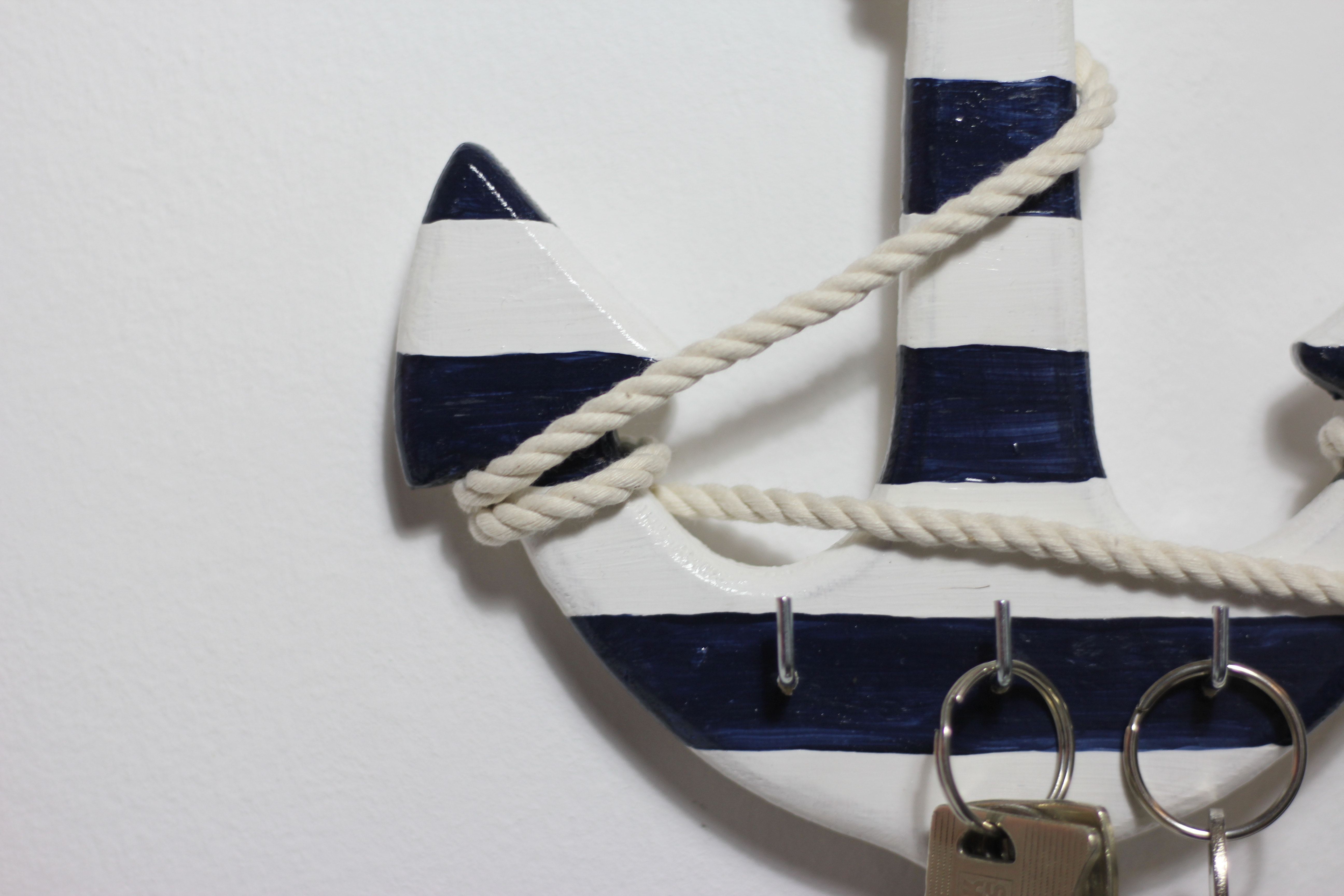 Ich bin so begeistert von dem hübschen Anker und würde ihn mir am liebsten selbst neben die Tür hängen, allerdings wurde dieser ein Geschenk für meine Mama. Ich habe den Anker auf Amazon gefunden und hatte sofort ein Bild im Kopf mit der Idee zur Umsetzung. Habt ihr das auch manchmal? Ihr seht eine Sache und denkt euch dass das einfach perfekt passt? Also habe ich das gute Stück gekauft und direkt losgelegt. Übrigens ist es auch eine schöne Idee den Anker mit Kindern zu bemalen und als personalisierter Schlüssel-Anker zu verschenken.