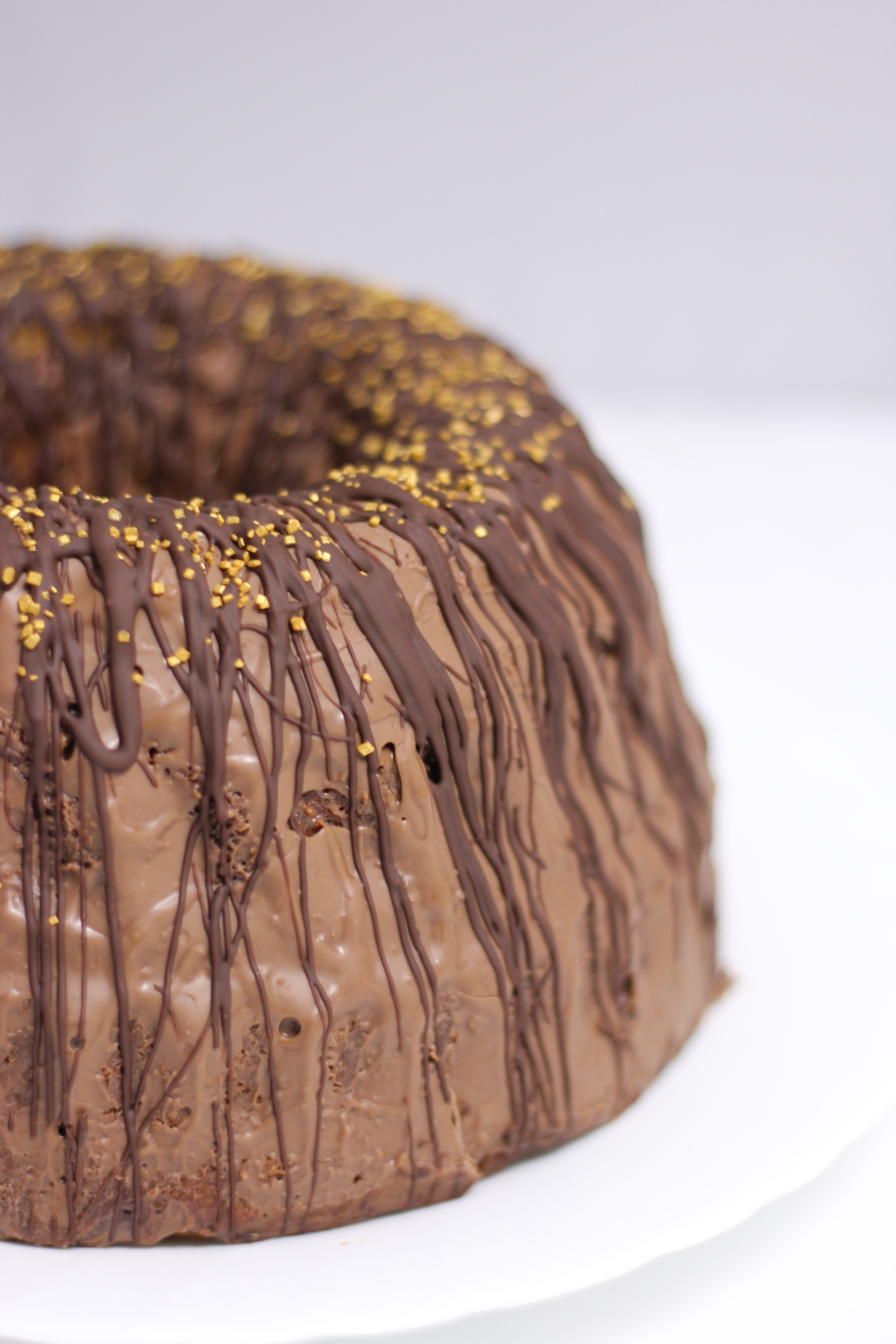 - Zum Schluss die restliche Schokolade schmelzen und über dem ausgekühlten Gugelhupf gießen.