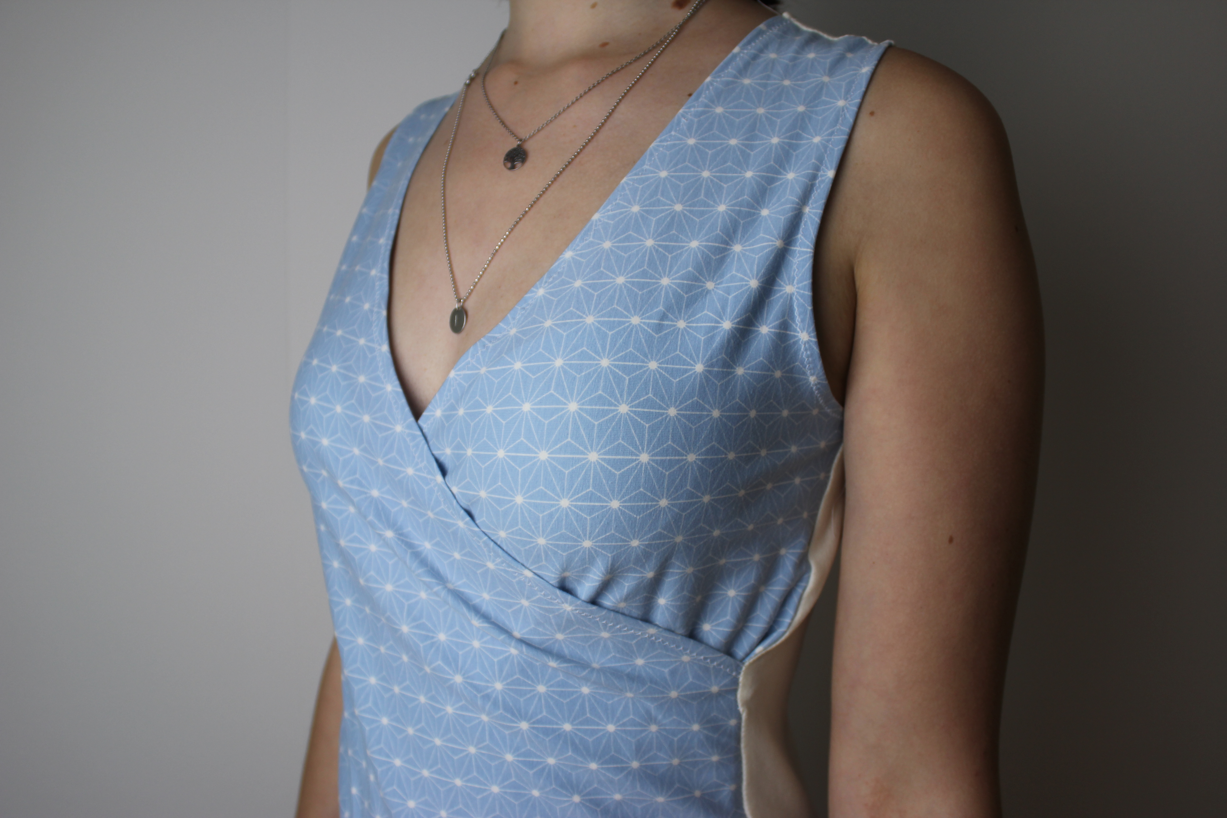 Endlich ist es soweit! Mein erstes selbst genähtes Oberteil! Ich bin teilweise echt verzweifelt und manchmal ging es total leicht von der Hand. Natürlich hab ich mich nicht für ein „normales“ T-Shirt entschieden, was wirklich einfacher gewesen wäre, sondern ein Top in Wickeloptik. Ich bereue meine Entscheidung überhaupt nicht, da es mit ein bisschen Näh-Erfahrung wirklich gut klappt und ich es nicht hätte besser machen können.